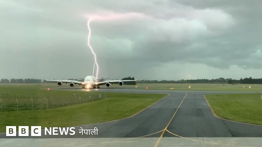 क्राइस्टचर्च विमानस्थलमा जब विमाननजिकै चट्याङ पर्यो