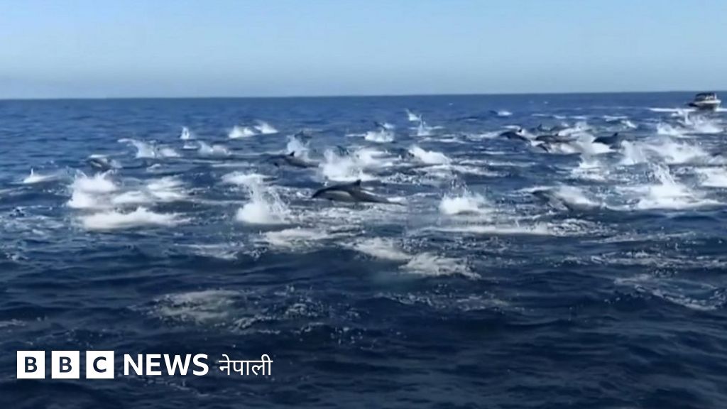 झन्डै ३०० वटा डल्फिन तीव्र गतिमा पौडिरहेको दृश्य क्यालिफोर्नियाको डाना पोइन्टनजिकै क्यामरामा कैद भएको छ।