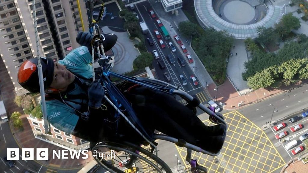 ह्वीलचेयरमा १० घण्टा लगाएर गगनचुम्बी घर उक्लने व्यक्ति