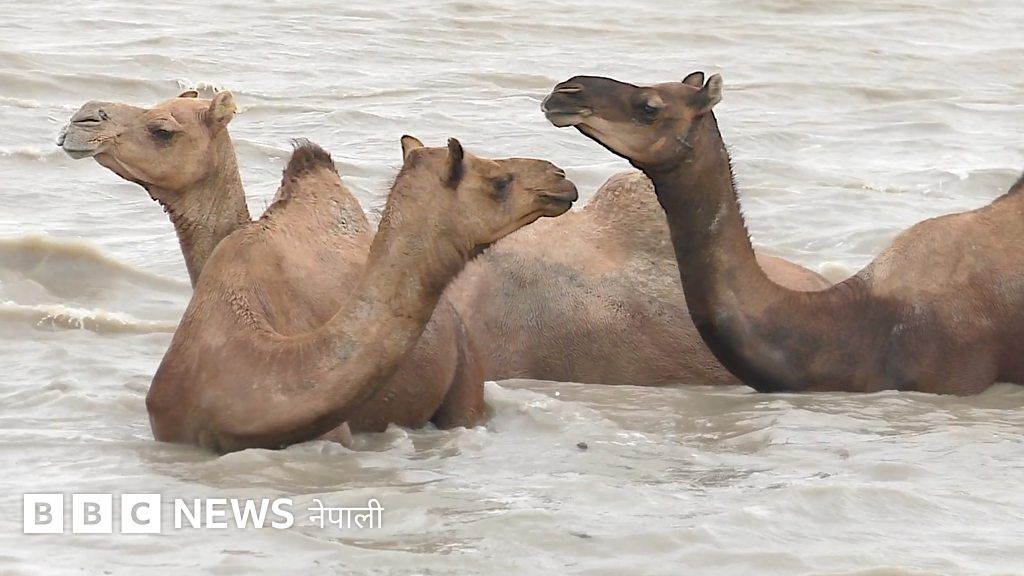 गुजरातको खाडीमा चरन मासिँदा 'पौडी खेल्न सक्ने' दुर्लभ ऊँट लोप हुने जोखिममा