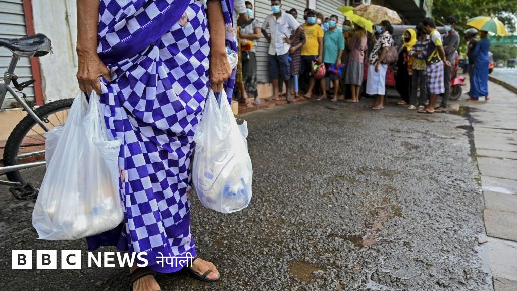 श्रीलङ्कामा कोभिड-१९ को नियन्त्रणका लागि लगाइएका कडा लकडाउनका माझ अत्यावश्यक उपभोग्य सामाग्रीहरूको खरिदका लागि मानिसहरू लामो लाइनमा बस्नुपर्ने अवस्था छ।