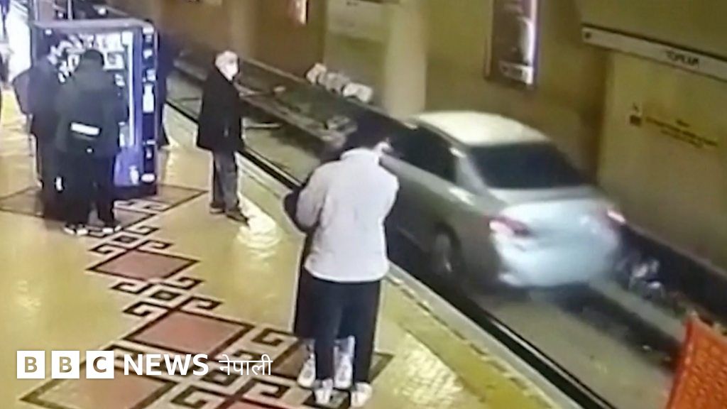 कसरी ट्रामको ट्र्याकमा कार आयो त? हेर्नुहोस् एउटा भिडिओ।