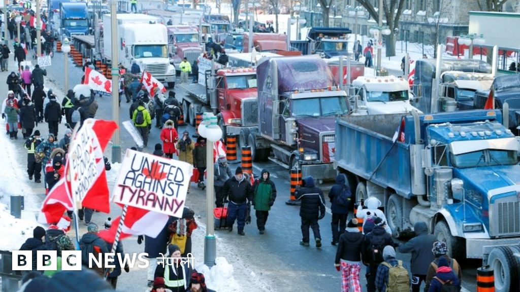 राजधानी ओटावामा 'फ्रिडम कन्भोई' भनिएको प्रदर्शनमा हजारौँ प्रदर्शनकारीहरू सहभागी भएका छन्।