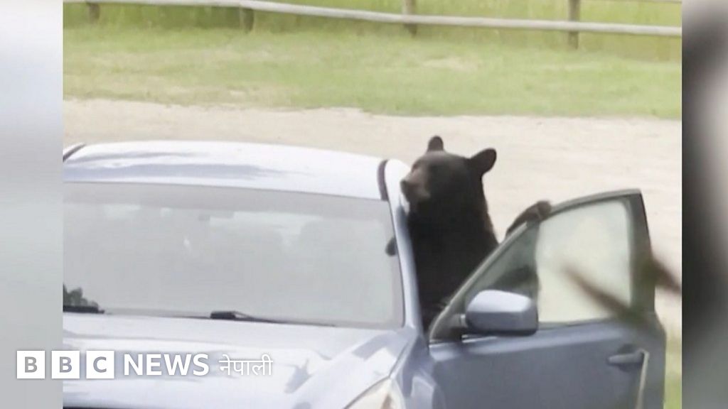 खाना खोज्न निस्किएकी माउ भालु गाडीभित्र थुनिएपछि
