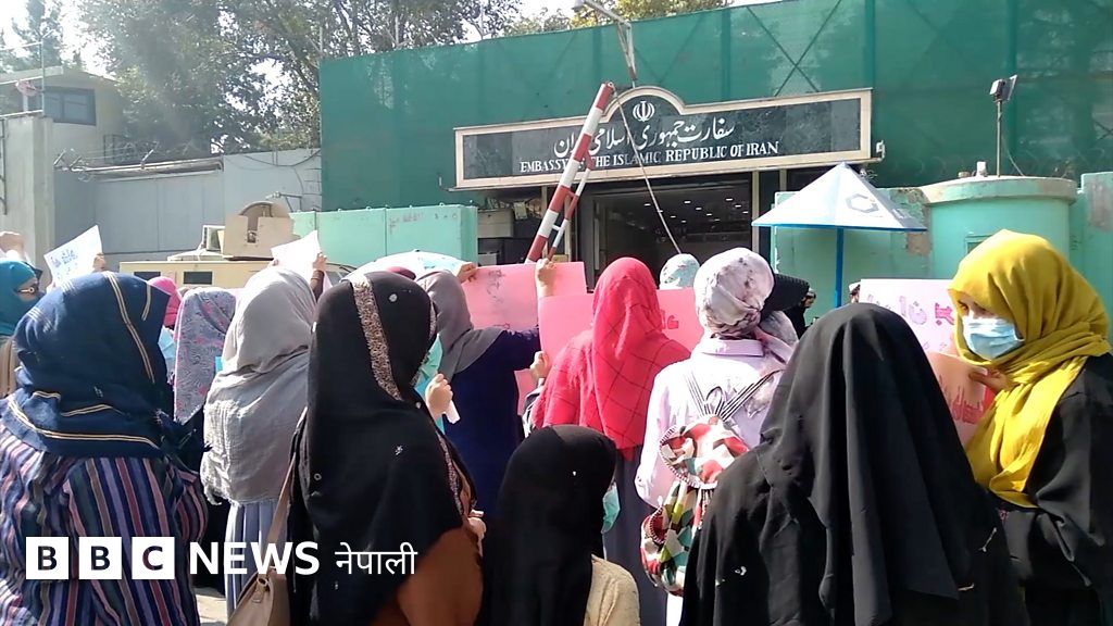 अफगानिस्तानको राजधानी काबुलस्थित इरानी दूतावासबाहिर अफगान महिलाहरूले विरोधप्रदर्शन र नाराबाजी गरेका छन्।
