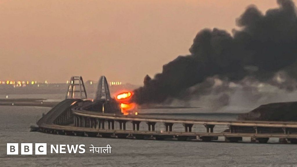 युक्रेन-रुस युद्ध: रुसलाई क्राइमियासँग जोड्ने एकमात्र पुलमा विस्फोटन र भीषण आगलागी