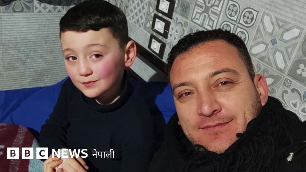 तस्बिरको क्याप्शन, भूकम्प आउनुभन्दा पाँच मिनेटअगाडि इस्माइलले छोरा मुस्ताफासँग सेल्फी खिचेका थिए