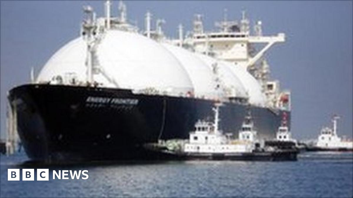 A liquefied natural gas ship tanker arrives at a gas storage station in Japan