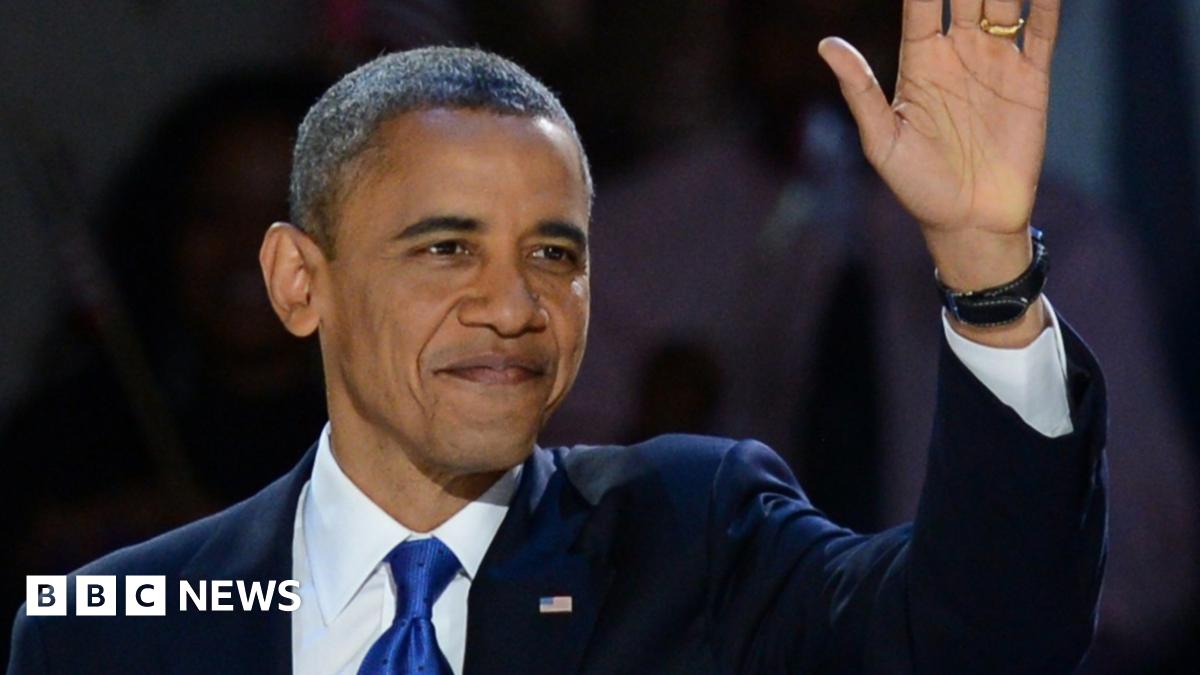 President Obama acknowledging the crowds at his victory speech in Chicago