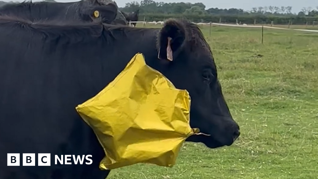 Lisa BlackmanA farmer is warning about the dangers of releasing balloons after one got stuck in a cow's mouth.
