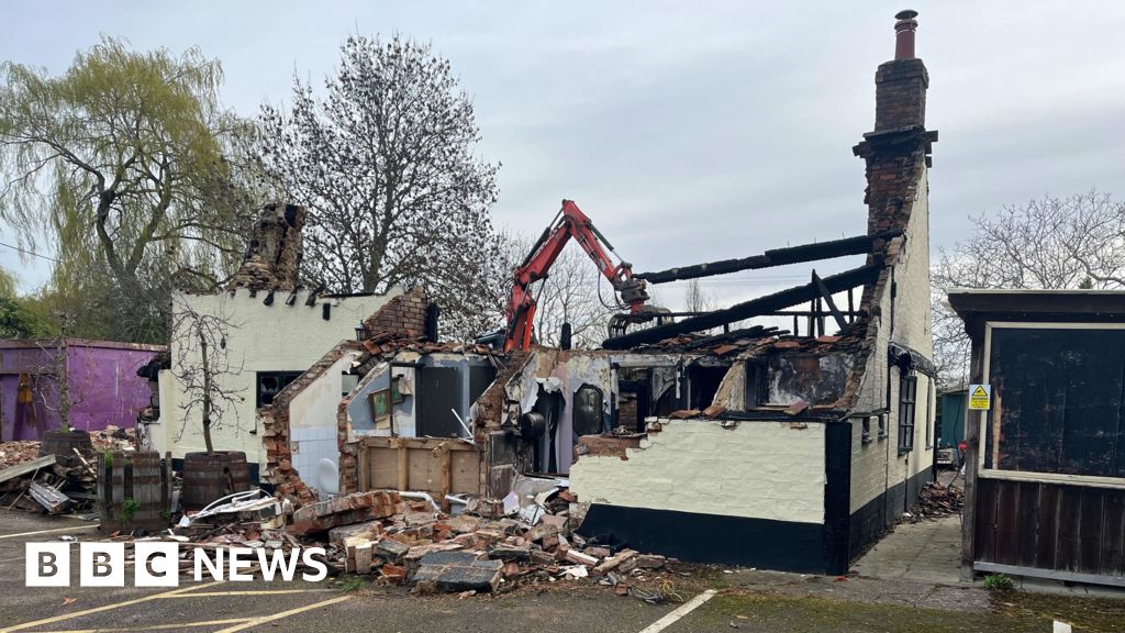 Tony Fisher/BBCWork has begun to demolish a historical pub which burnt down last year.