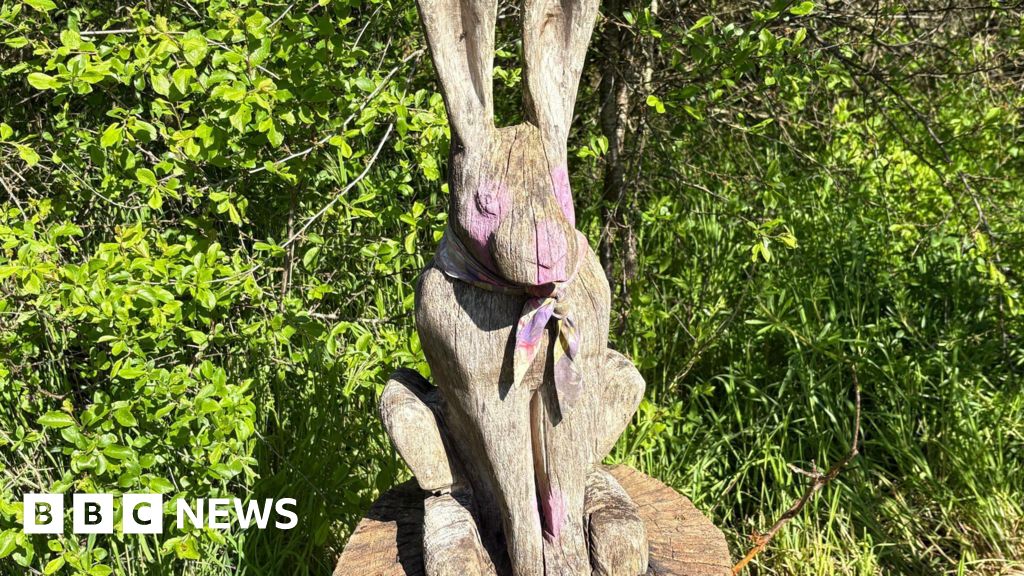Wooden figures of a hare, fox and ladybird were daubed with pink paint and sculptures of an owl and a squirrel were also damaged, the charity said.