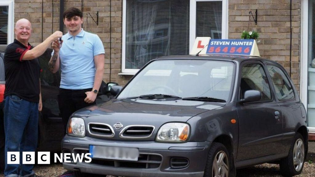 Steven Hunter, from Hull, presented the Nissan Micra to his pupil Jack Price, 20, after he passed at the first time of asking.