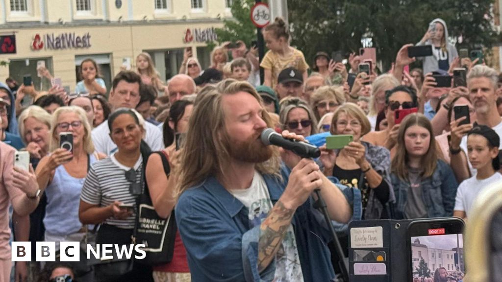 Elliot Deady/BBCEurovision singer Sam Ryder said it was "amazing" to sing in front of hundreds of fans who flocked to see him perform in a series of homecoming gigs.