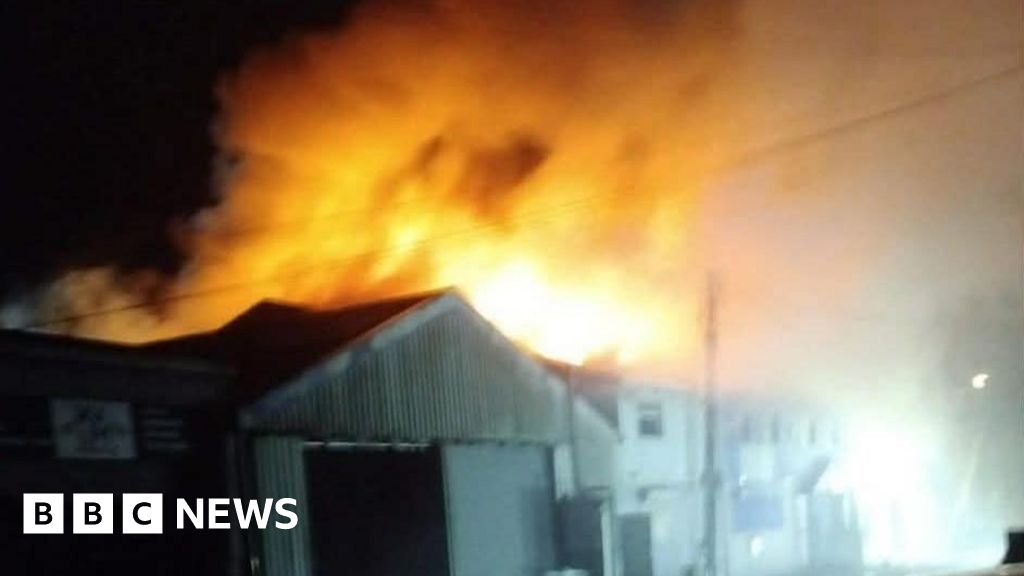 James WilkinsScores of firefighters have been tackling a large blaze on an industrial estate.
