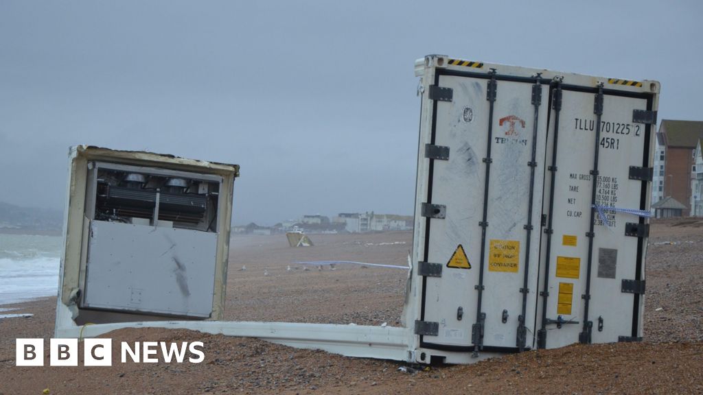 Seaford Town Council reported that a container holding "food and packaging" washed up on the East Sussex town's beach on Tuesday.