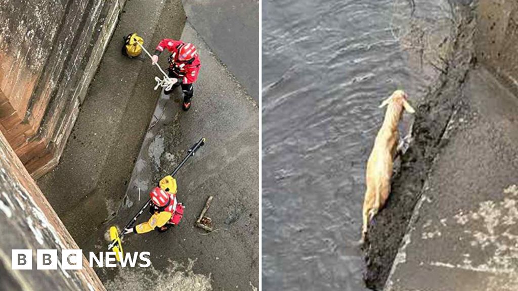 Rescuers pushed the goat onto the bank where it was re-captured up river, in what the fire service described as a "satisfactory conclusion".