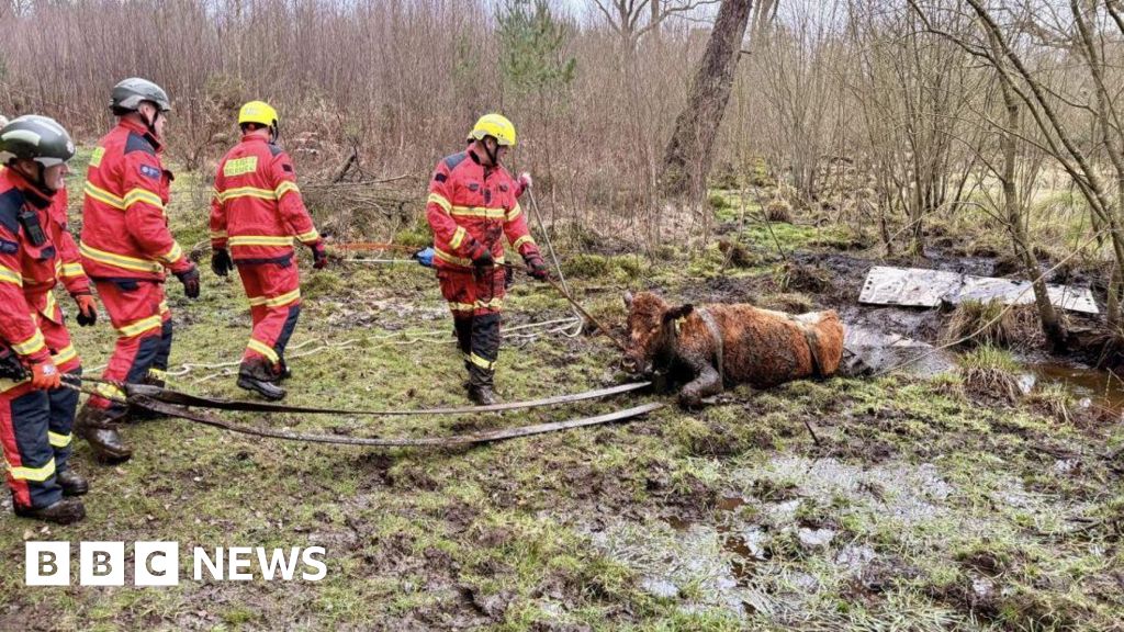 Cow pulled to safety after getting stuck in mud
