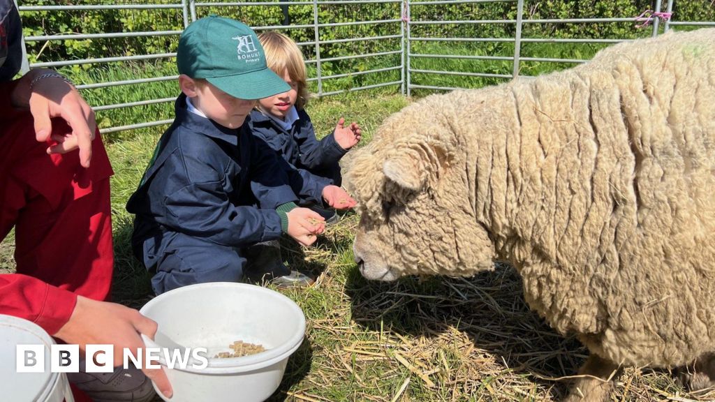 BBC/Sam Dixon-FrenchSchoolchildren have been learning about farming by spending a week looking after sheep.