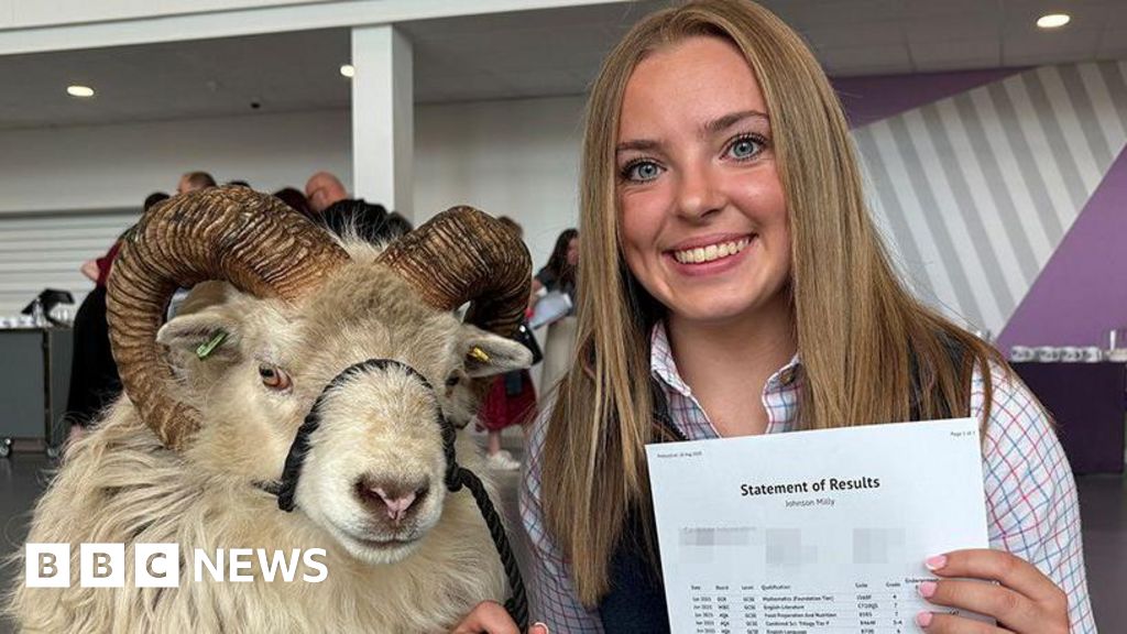 Shepherd takes 'therapy sheep' to get GCSE results