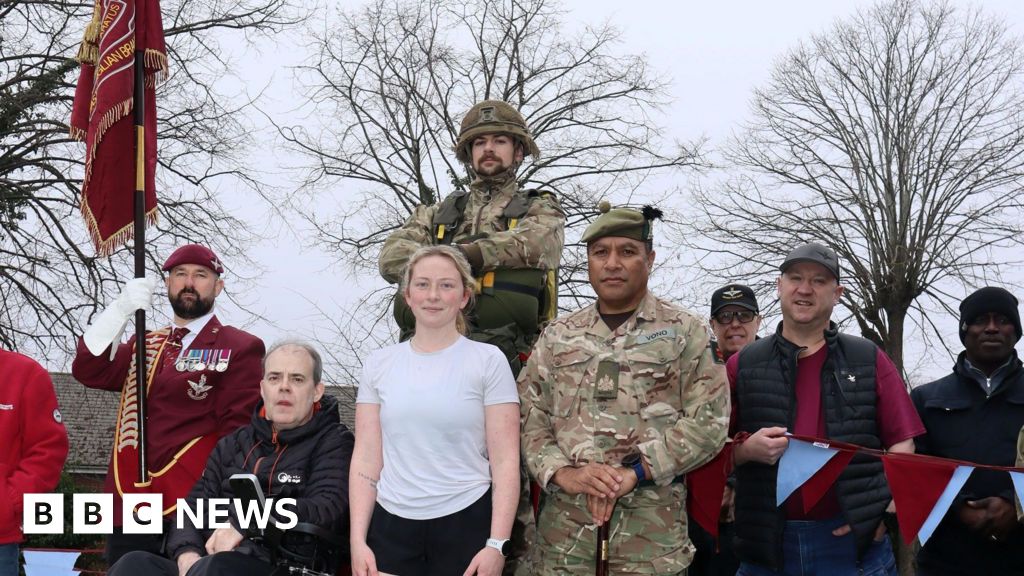 L/Cpl Mackenzie Delaney set off from Aldershot on Monday and arrived at Colchester Garrison at 12:00 GMT on Wednesday, raising £2,000 towards the cost of a bronze life-sized statue of a modern-day paratrooper.