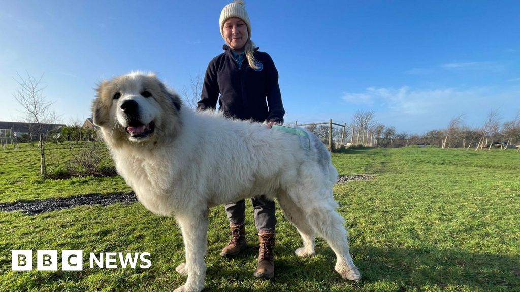 Brody, a six-year-old white Pyrenean mountain dog, stands around six feet tall (1.82m) on his hind legs and will soon be put up for adoption by Animal Concern Cumbria, based in Egremont, who described him as a "loveable giant".