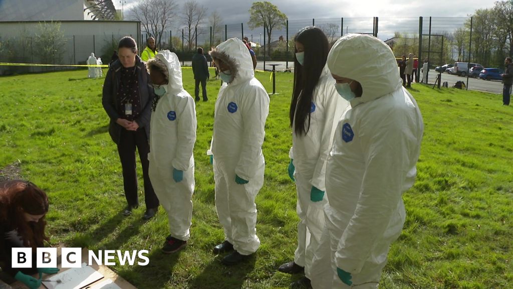A group of Year 8 students from Leeds City Academy were taught how to investigate a crime scene during an exercise in Headingley on Tuesday.