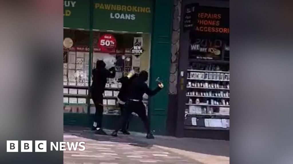 Video footage showed three people attacking the front window of the outlet before running from the scene.
