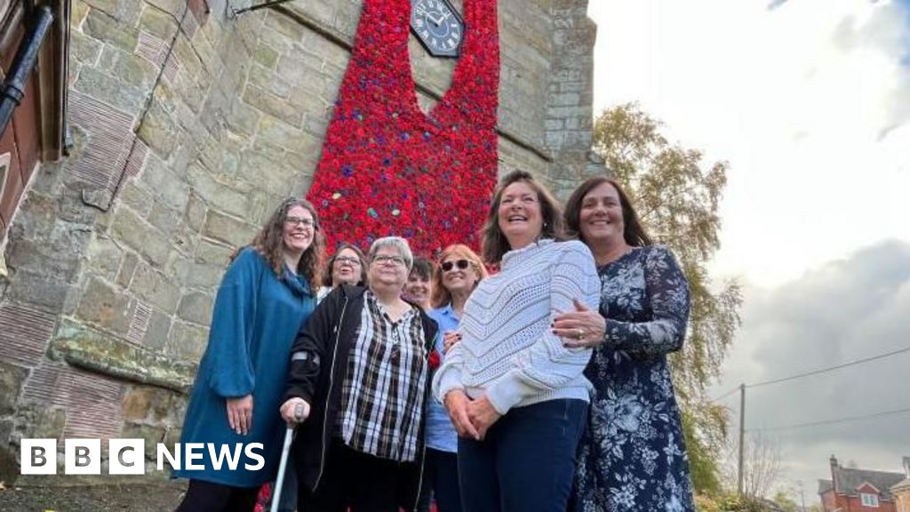 The nine women of Twisted Stitches, a knitting and crotchet group in the Shropshire village of Myddle, crafted a 12-metre-tall artwork to mark Remembrance Day.
