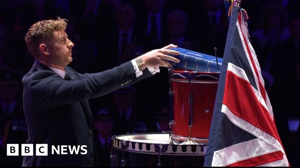 Alex Lowe, 33, from Cornwall said it was an "honour and a privilege" to place the book on top of military drums during the Festival of Remembrance on Saturday evening, which was attended by the Royal Family.