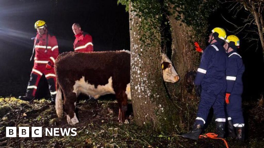Cow saved after getting head stuck in two trees