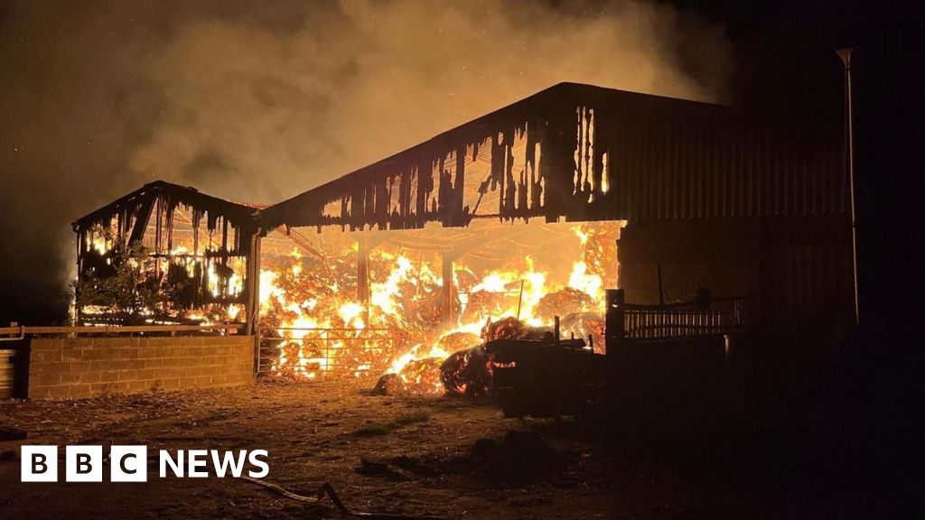 The blaze at Egghill Farm, near Frankley, Worcestershire, in August 2024 destroyed two barns, two trailers and hundreds of bales of hay.