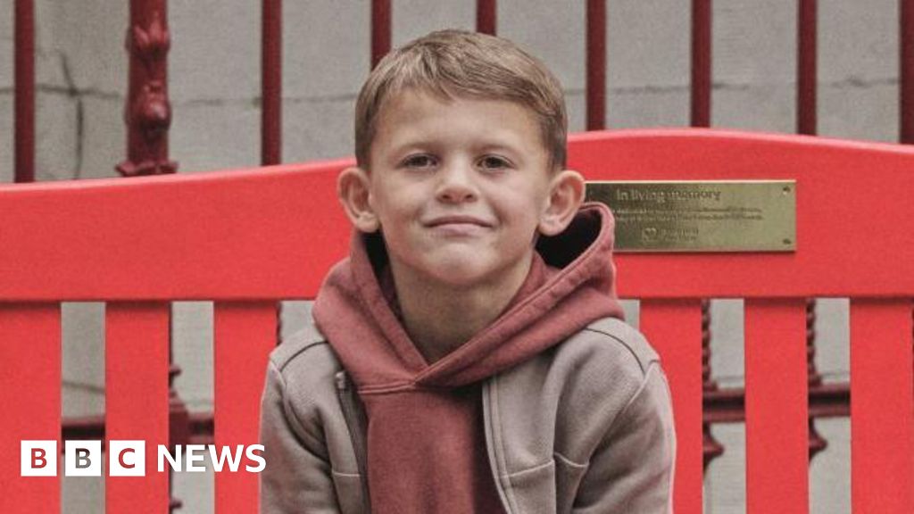 British Heart FoundationA young football fan with heart failure has been left "thrilled" by the unveiling of a bench in his name, his mother said.