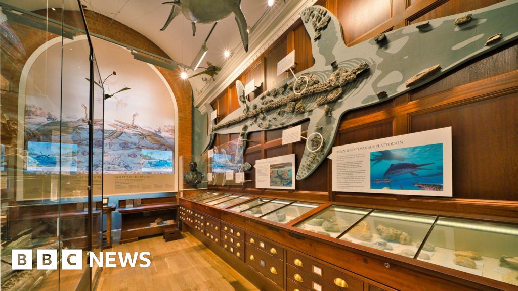 The display has one of the first dinosaur fossils ever described, the juvenile Scelidosaurus and Jurassic fauna and flora, from ammonites and fossil fish to large marine reptiles such as Ichthyosaurs.