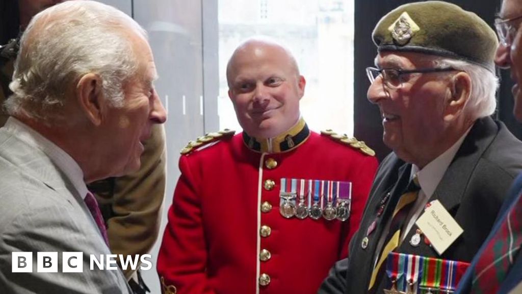 BBCKing Charles III has praised a 101-year-old D-Day veteran and told him to "keep drinking whisky" during a visit to Lancashire.