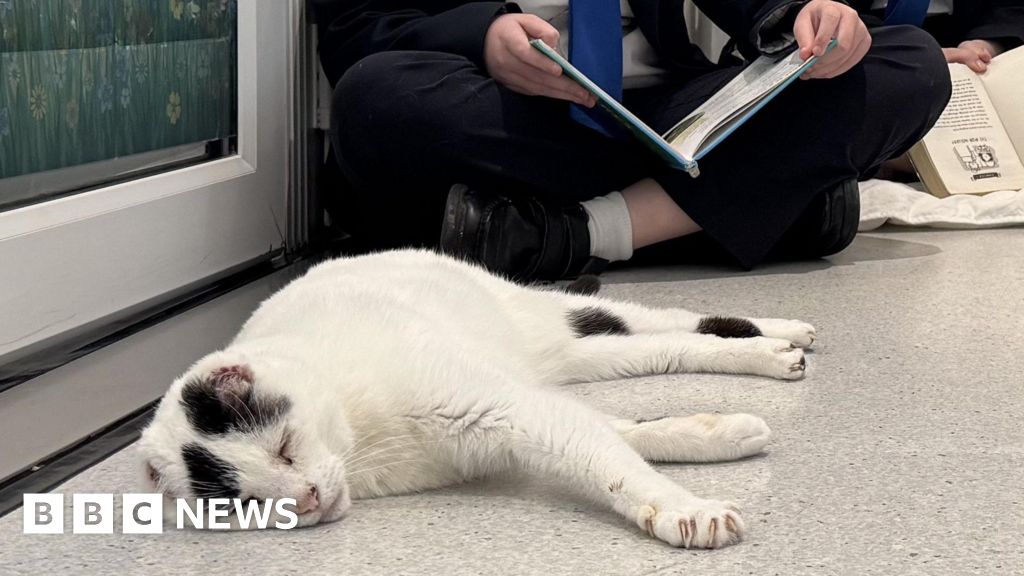 Students read their books to rescue cat Mr B