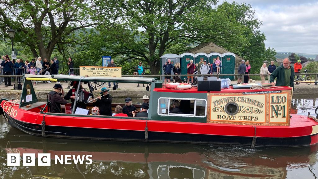 Olivia Richwald/BBCLater on Saturday, the Progress took to water for a four-mile mobile performance along the Leeds-Liverpool Canal from Bingley to Saltaire.