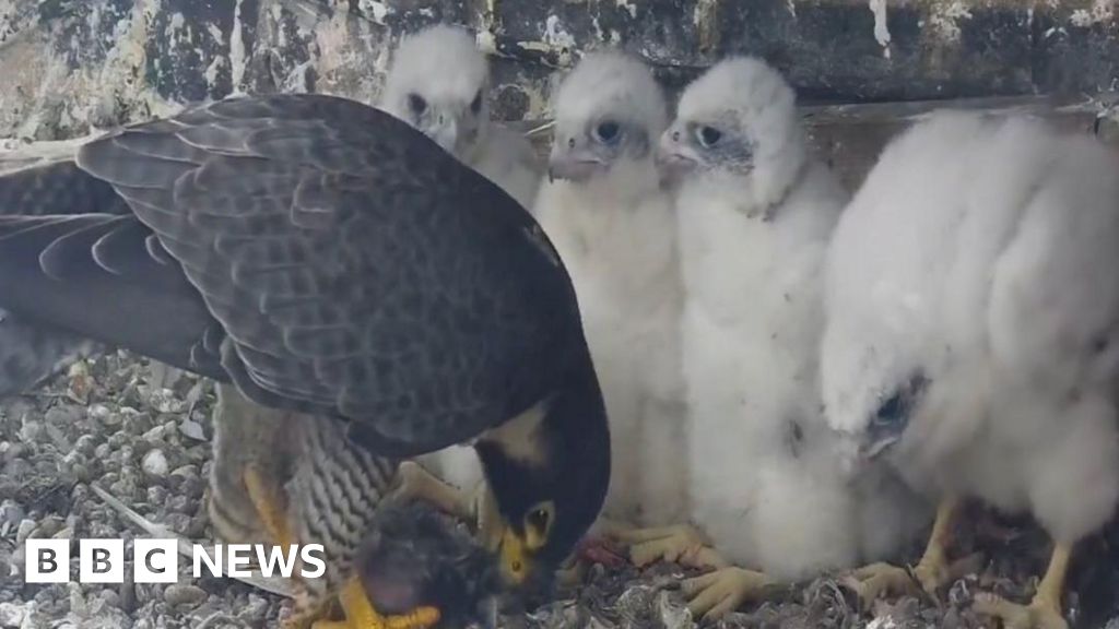 The chicks hatched at Leamington Spa's town hall in April and can be watched 24/7 via Warwickshire Wildlife Trust's livestream of the nest.