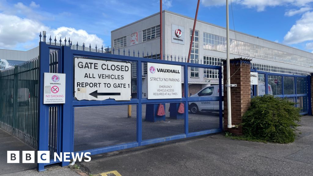 Laura Foster/BBC An entrance to the Vauxhall factory in Luton. There is a blue gate with a Vauxhall sign on it and another sign saying "Gate Closed". In the background is a large building with another Vauxhall sign on it.Laura Foster/BBC