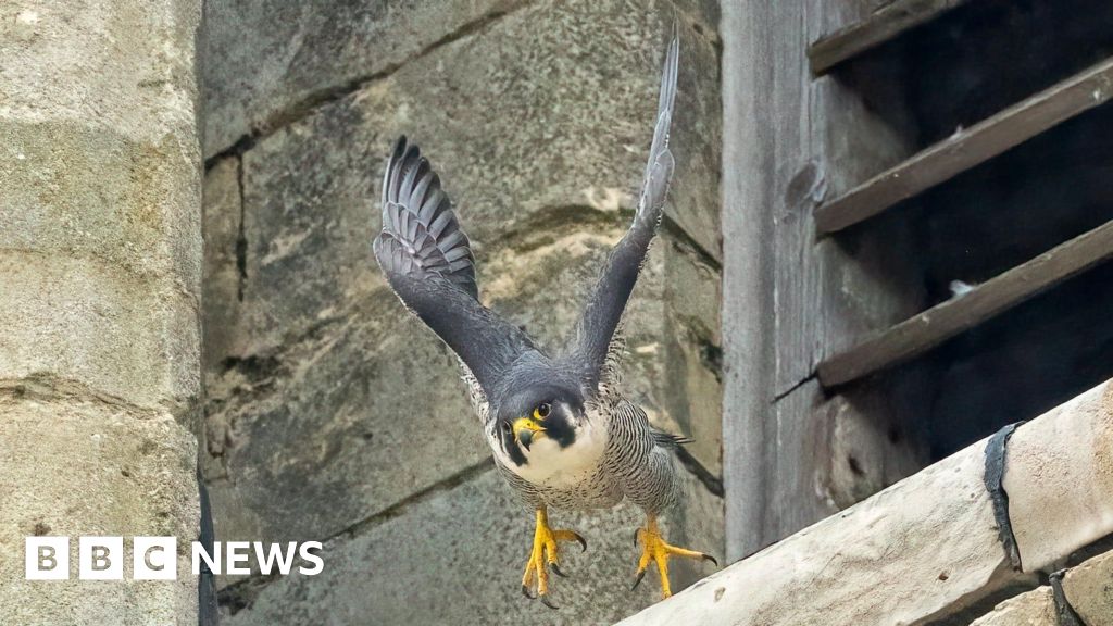The birds of prey have been nesting at the cathedral for more than a century, with photographers patiently waiting in Minster Yard to capture them on camera.