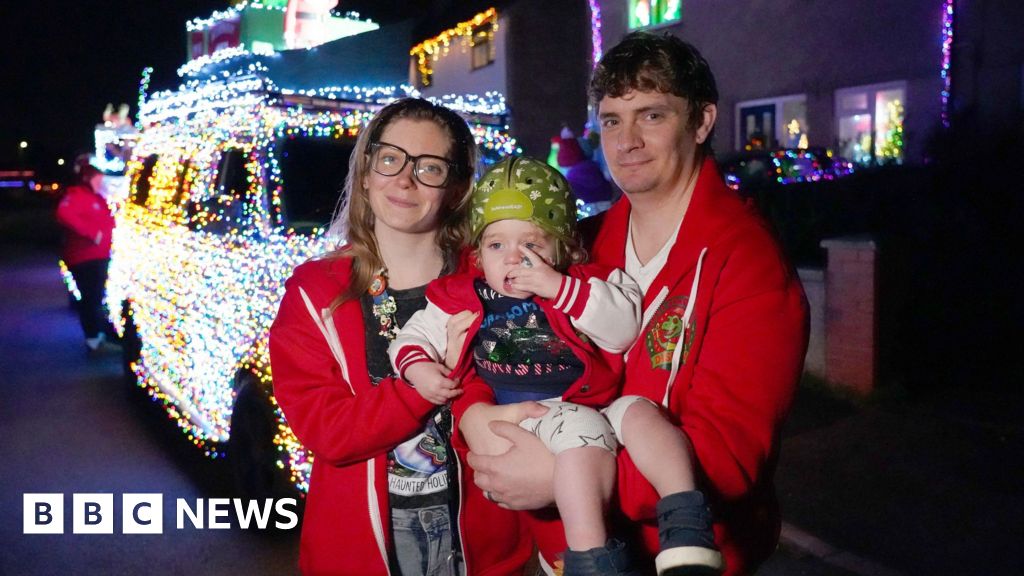 PA MediaThe family of a two-year-old boy with a rare genetic mutation have been raising money for the children's hospital that treated him by installing a Christmas light show outside their home.