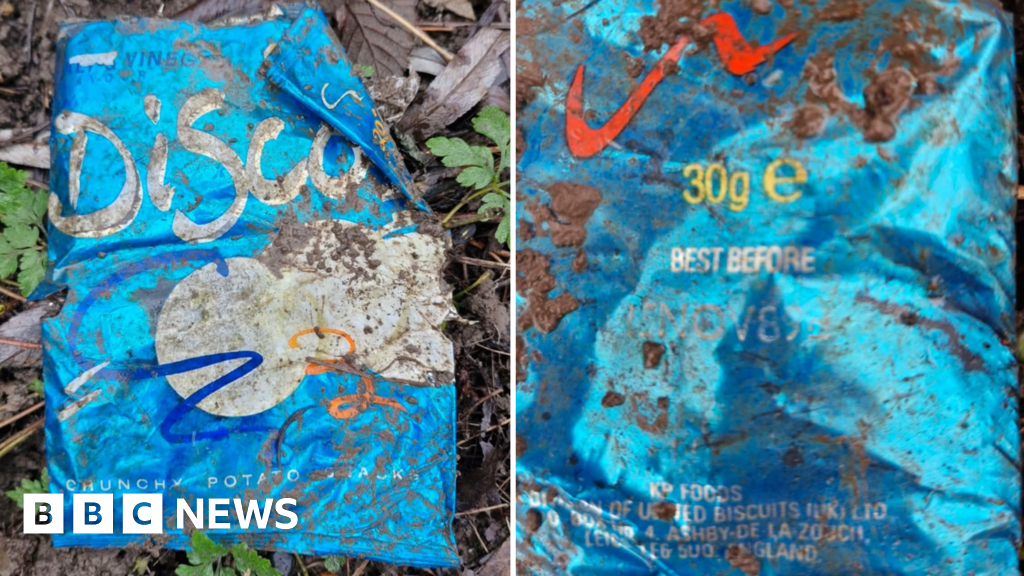 Laura BrennanA crisp packet from 1989 was found among rubbish that volunteers cleared away from woodland in Leeds.