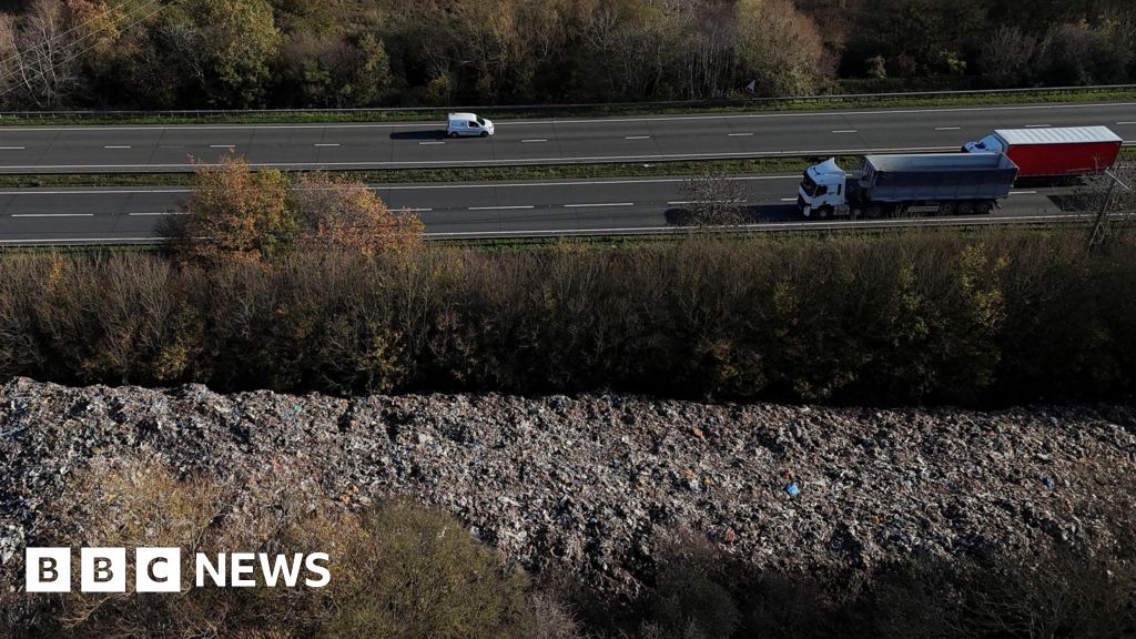 The rubbish itself is made up of what appears to be processed domestic waste, shredded plastics, polystyrene, tyres, and other household items.