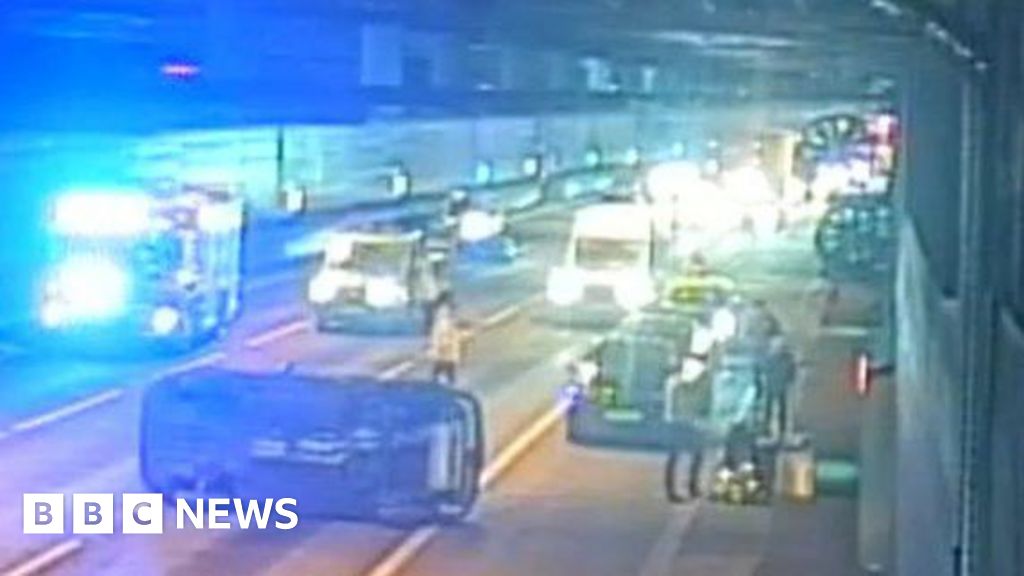Motorway closes after car flips on its side