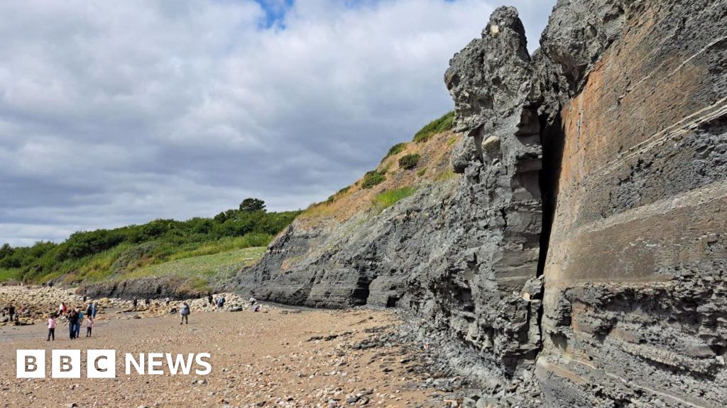 James CarrollVisitors to a beach popular with fossil hunters are being urged to stay away from a cliff where a huge crack has appeared.