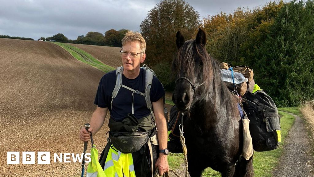 Land agent Roger Sewill, who lives in Cheselbourne, Dorset, has given himself three weeks to complete his challenge, which he started on Tuesday, with his pony Scarlet.