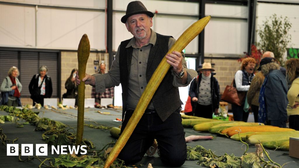 Graham Barratt's luffa plant was measured at 38ft (11.6m) tall at the Malvern Autumn Show earlier - about the height of a typical three-storey building.