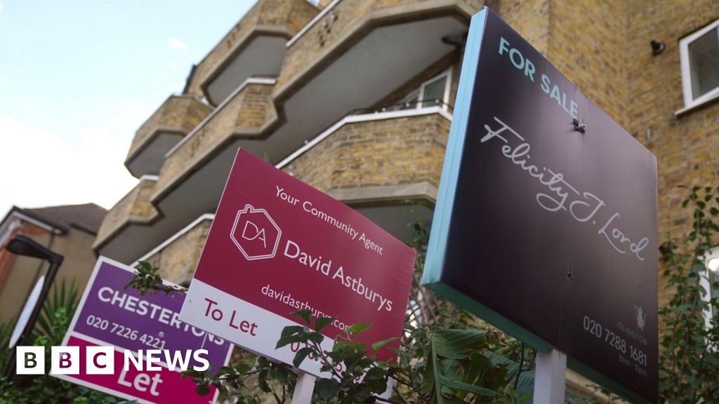 PA Media Two colourful 'to let' and one colourful 'for sale' boards outside a block of London flatsPA Media