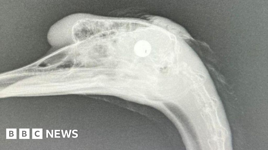 The female swan was one of a pair found by rescuers at Beddington Park in Sutton, south London, on Sunday morning, with an X-ray finding she had been shot in the head with a ball bearing.