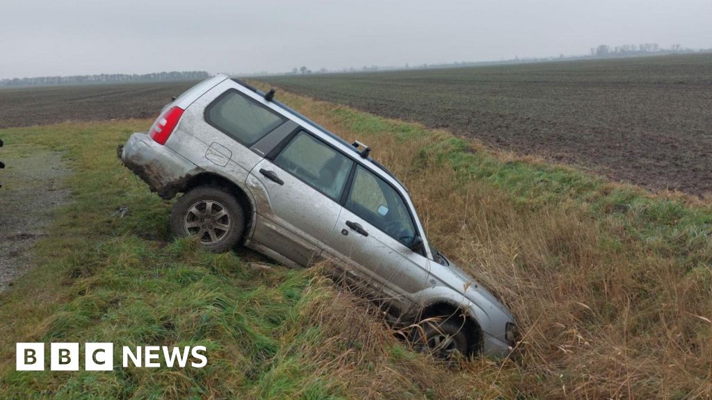 Cambridgeshire PoliceAn investigation is ongoing after a car suspected of being involved in hare coursing crashed into a ditch.